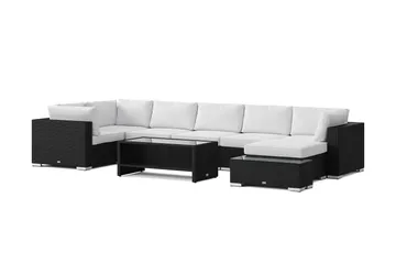 Bahamas udendørs U-sofa 7-pers vendbar divan med åben afslutning og bord med hylde