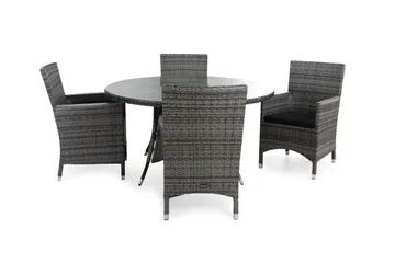 Thor Havesæt Ø140 + 4 Lænestole Lyx m Armlæn m Hynde