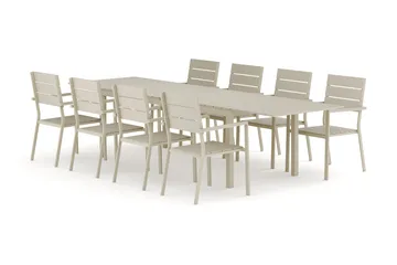 Tunis udendørs spisebordssæt, udtrækkeligt 205/305x90 cm, med 8 Jenny spisestole