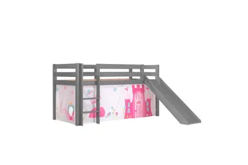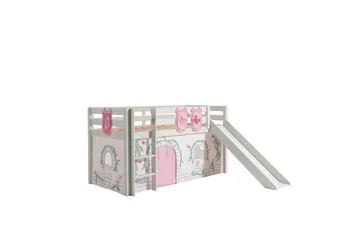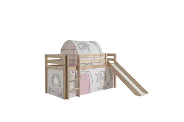 Halvhøj seng med gardin Pino Forår Naturlig, Naturlig, Med rutsjebane, Forår, Fjeder, Uden lommer