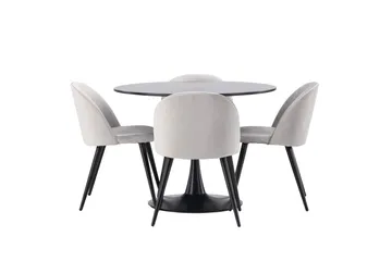 Bianca Spisebordssæt 110 cm Rund med 4 Velvet Stole
