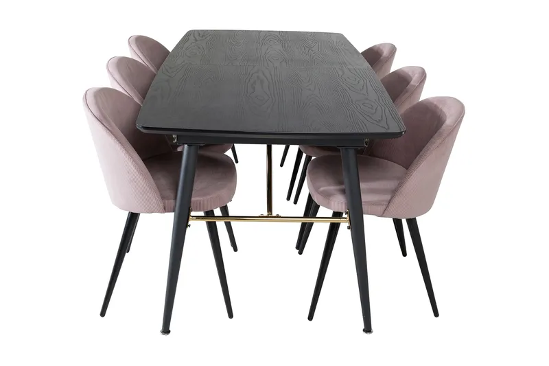 Venture Home Irunea Udvideligt Spisebordssæt 180 cm inkl 6 Valeri Stole Sort/Lyserød/Manchester