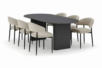 Peyra Ovalt Spisebord 200 cm med 6 Sawako Stole