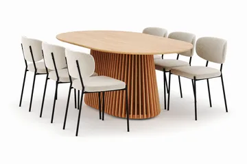 Noira Ovalt Matbord 220 cm med 6 Sawako Stolar