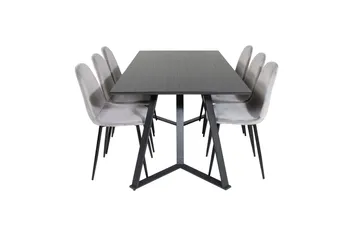 Uno Spisebordssæt 200 cm Rektangulær med 6 Velvet Stole