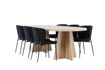 Spisegruppe Stjärnö 200x90 cm Natur med 6 stk. Night Stole