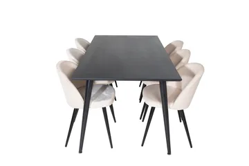 Dipp Spisebordssæt 180 cm Rektangulær med 6 Velvet Stole