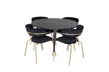 Dipp Spisebordssæt 115 cm Rund med 4 Velvet Stole