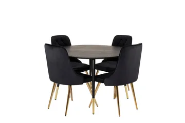 Dipp Spisebordssæt 115 cm Rund med 4 Velvet Deluxe Stole