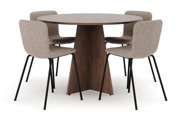 Bootcut Rundt Lille Spisebord i Valnød 110 cm med 4 Katy Spisestole