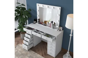 Ramender Stort Sminkebord med spejl og lys med opbevaring