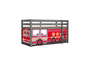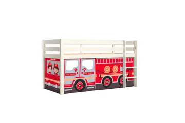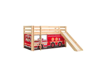 Halvhøj seng med forhæng og rutsjebane Pino Naturlig, Brandbil