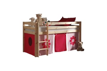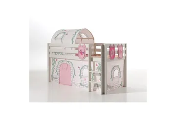Halvhøj seng med forhæng Pino Naturlig, Pink blomst
