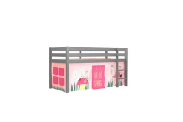 Halvhøj seng med gardin Pino Prinsesse Grå, Grå, Med rutsjebane, Prinsesse, Ingen lommer