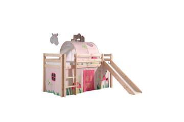 Halvhøj seng med gardin Pino Astro Naturlig, Naturlig, Med rutsjebane, Med tunnel, Ingen lommer