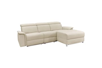 Hjørnesofa 3-personers Lund Creme, Læder/PU, Venstre Elektrisk Tilbagelæner