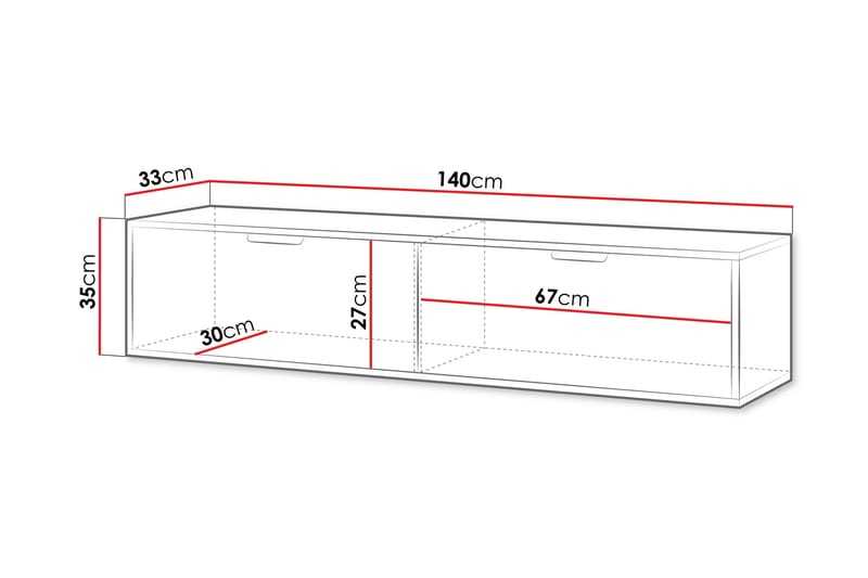 - Mål: B:140 cm H:35 cm D:33 cm