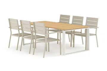 Devon udendørs spisebordssæt 210x100 cm med 6 Thor lænestole