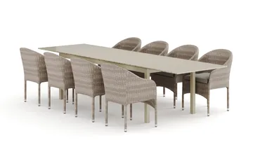 Tunis udendørs spisegruppe, udtrækkelig 205/305x90 cm med 8 positionsstole