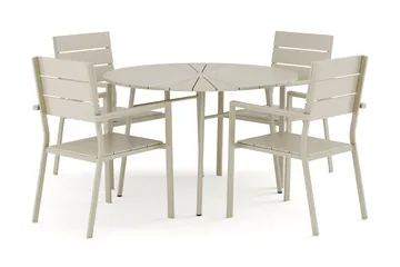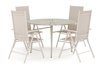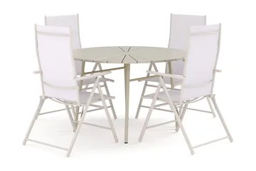 Tunis udendørs rund spisegruppe 120 cm med 4 Sanna positionsstole