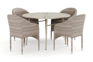 Tunis udendørs rundt spisebordssæt 120 cm med 4 Thor lænestole