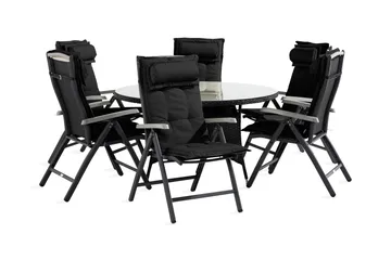 Thor spisebordsgruppe 140 Rund + 6 Monaco Havestol med hynde